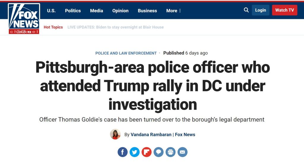 Officer Thomas Goldie, Zelienople Police Department, January 6, 2021