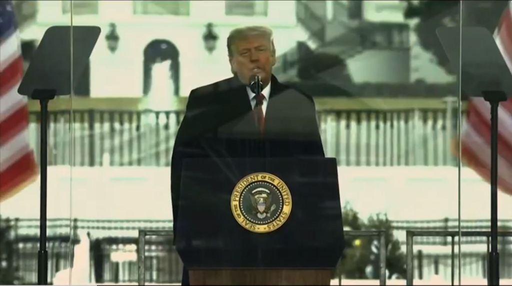 Unidentified Trump supporter and insurrectionist, heard in video presented to U.S. Senate during opening day of Trump’s second impeachment trial, February 9, 2021.