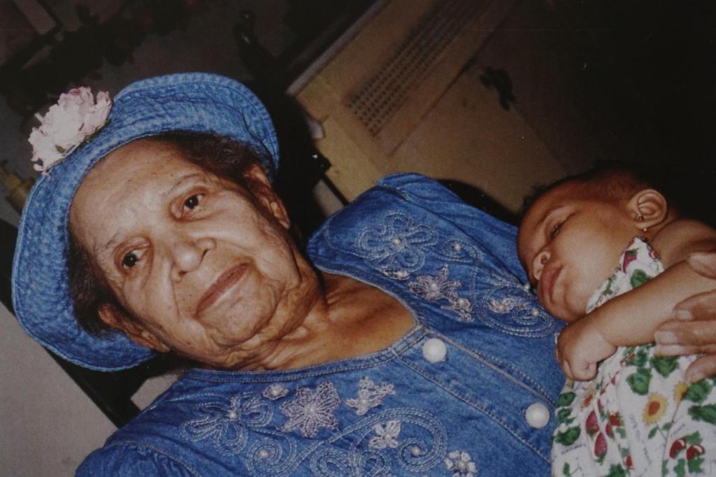 In this undated photo provided by Carolyn Roberts of the Gibbs family in April 2021, Tulsa Race Massacre survivor Ernestine Alpha Gibbs holds one of her grandchildren, DeShayla Roberts, two decades earlier. (Courtesy Carolyn Roberts via AP)