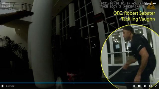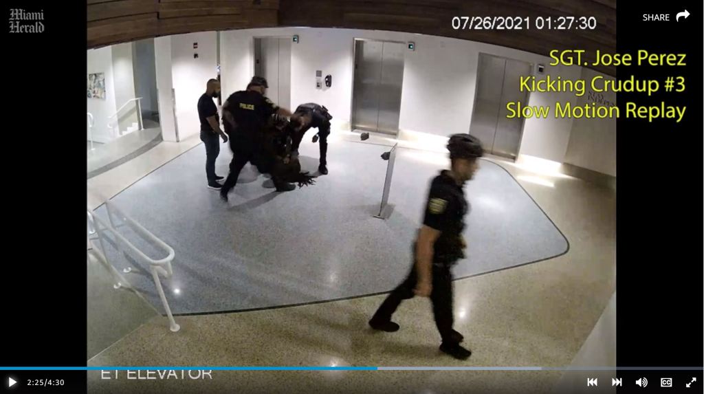 When the pigs notice him observing and recording them, they (the ones who have already had their sexual pleasure on the suspect) now regroup and approach the bystander. We now begin seeing events through the body cameras worn by the Miami cops themselves. And what we see is that the bystander is also brutalized.