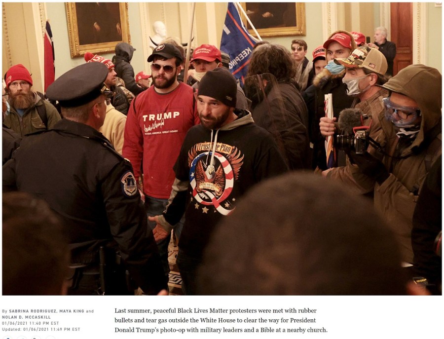 Now, children, raise your hands if you can imagine Black protesters being welcomed at Das Kapital by cops the way that they welcomed Trump's White supporters today. Keep holding 'em up, while I count. That's what I thought. I might be wrong about this. But I'm not. Source: Politico, January 6, 2021